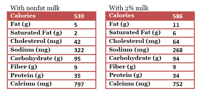 • 1  1/2 cups nonfat or 2% milk (or milk substitute of your choice)
