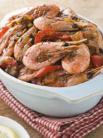 Combine first 6 ingredients in a bowl. Heat a large nonstick skillet over medium-high heat. Add soy sauce mixture; cook until lightly thickened, about 1 minute. Add vegetables and red pepper flakes. Cook, stirring constantly, until vegetables are soft, about 1 minute. Add shrimp and 1/4 cup water. Cook, stirring often, until shrimp are just cooked through, 2 to 3 minutes more. Divide among 4 bowls; serve immediately.